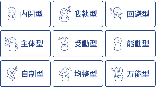 - スキル特典の分布から、「回避型」「自制型」「受動型」「能動型」「内閉型」「均整型」「我執型」「主体型」「万能型」の9つの「スキルタイプ」に分類して、自己の特性を把握することが出来ます。